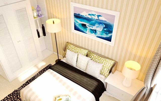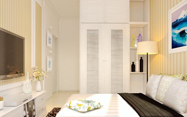 Phòng ngủ được thiết kế thoáng mát và rộng rãi với nội thất sang trọng cùng hệ cửa sổ lớn tuy ấn tượng nhưng vẫn rất thư giãn,phù hợp với không gian nghỉ ngơi.