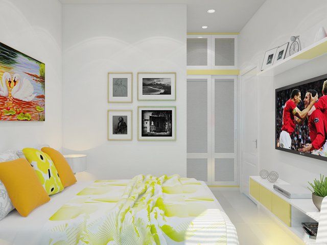 Yếu tố này kết hợp với sàn nhà, tường, trần màu trắng tinh khôi mang đến cảm giác thanh thản, nhẹ nhàng và làm nền cho những món đồ nội thất màu sắc, độc đáo.